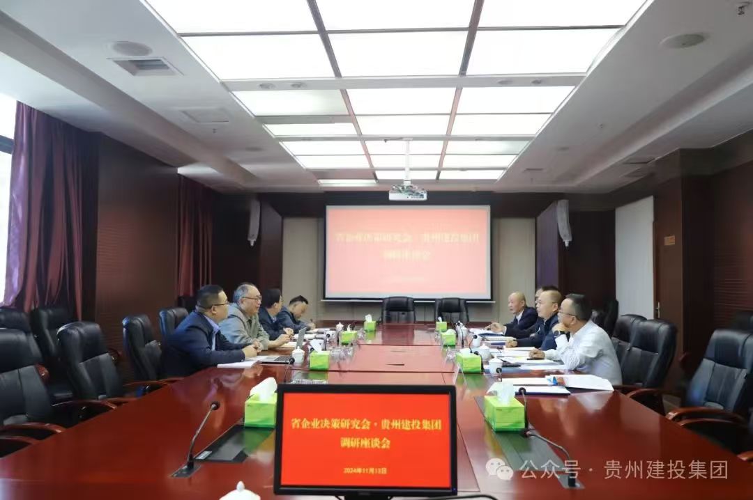 11月13日,贵州省企业决策研究会高级专家、省国资委原二级巡视员马杰,常务副会长、秘书长陈朝科一行在贵州建投集团调研座谈。集团党委委员、副总经理滕建勇出席座谈会。