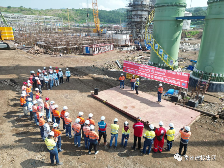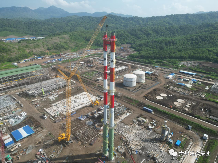 2024年1月2日上午9时,贵州建投集团承建的印尼阿曼铜冶炼项目在中色股份、管理公司PMC、管理公司BVI及业主AMMIN的共同见证下,顺利完成百米烟囱吊装任务。