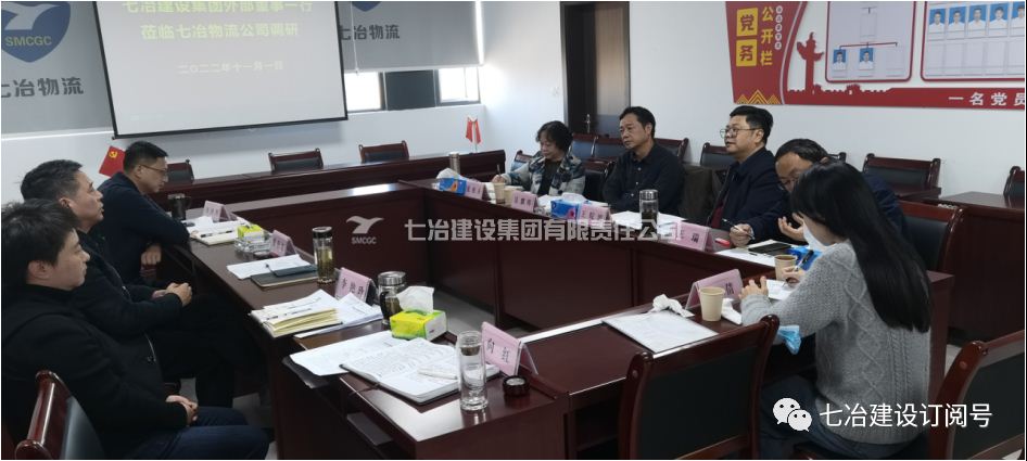 11月1日下午,七冶建设集团外部董事吴耀晖、王皖波、张艳齐、王瑞一行来到七冶物流公司调研指导。物流公司党支部书记兼董事长张仕权及相关职能部门负责人参加调研座谈。张仕权汇报了物流公司现行经营模式、产值完成情况、存在困难及下步打算。