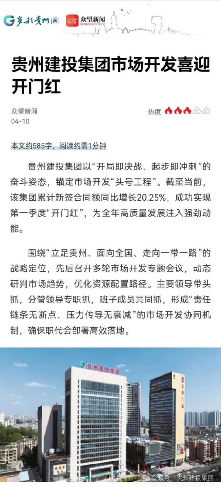 - 多家媒体关注贵州建投集团一季度“开门红”