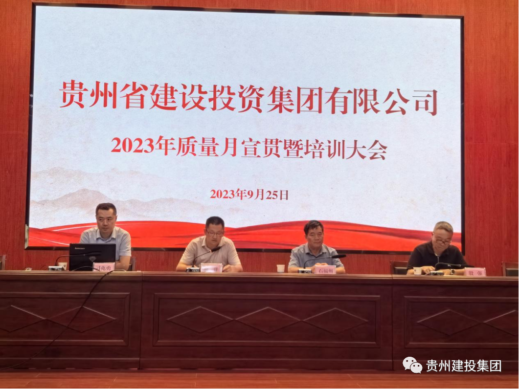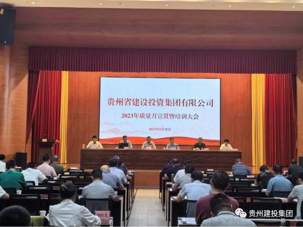 为全面贯彻落实党的二十大精神,落实《质量强国建设纲要》和贵州省贯彻落实实施意见部署及省国资委工作要求,提高质量意识,推进质量提升及变革创新,推动质量管理水平提升。贵州建投集团于2023年9月25日在建投大厦21楼1号会议室召开2023质量月宣贯暨培训大会。