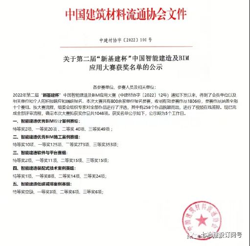 近日,从中国建筑材料流通协会传来好消息——七冶建设集团与贵州理工大学联合申报的“茅台广场一期住宅(一标段)BIM技术综合运用”项目,荣获2022年第二届“新基建杯”中国智能建造及BIM应用大赛“智能建造优秀BIM施工案例组”一等奖。