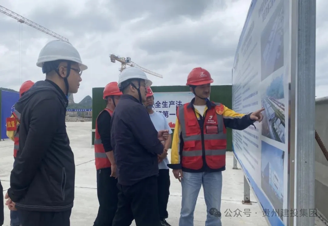 5月6日,贵州建投集团党委书记、董事长、总经理钟汰甬深入贵州现代物流牛郎关智慧物流园库区改造二期项目部施工现场调研。集团下属安装公司党委书记、董事长张俊等陪同调研。