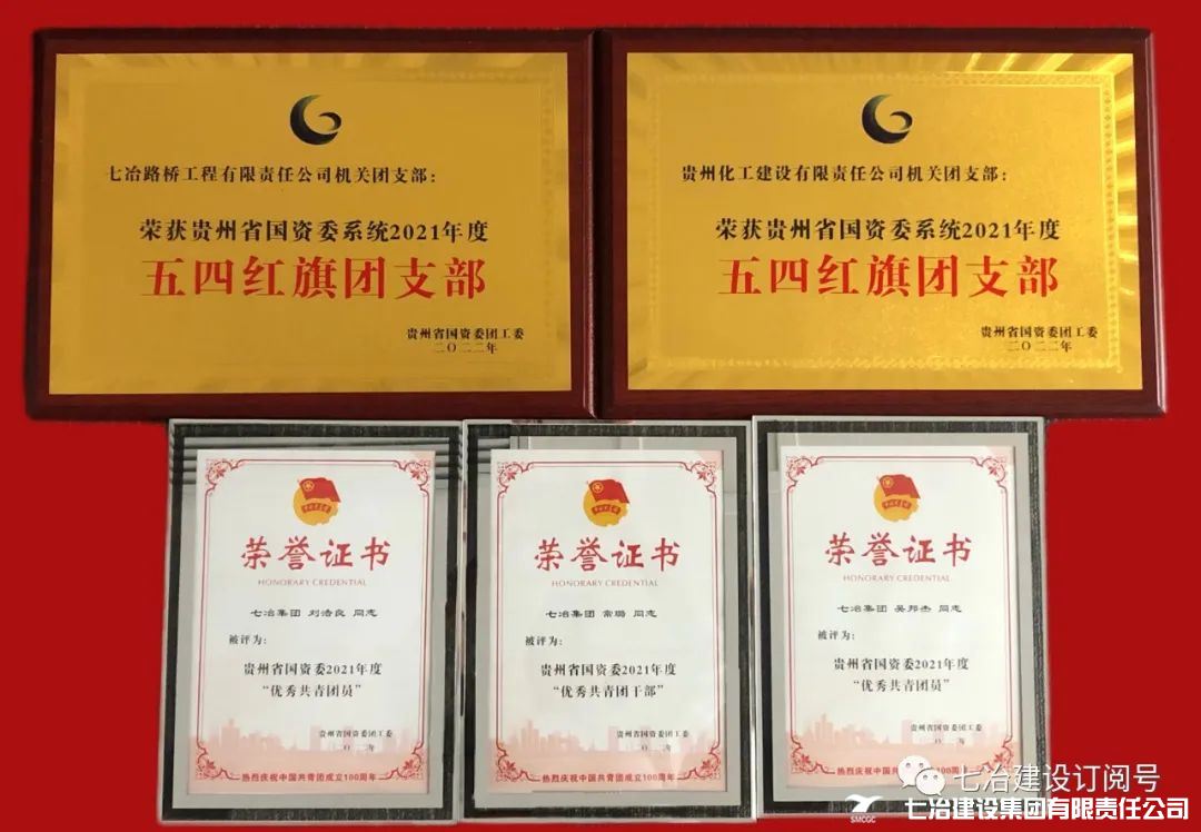 其中,七冶路桥工程有限责任公司机关团支部、贵州化工建设有限责任公司机关团支部被表彰为“五四红旗团支部”,七冶建设集团常璐被表彰为“优秀共青团干部”,七冶建设集团刘浩良、吴邦杰2名个人被表彰为“优秀共青团员”。
