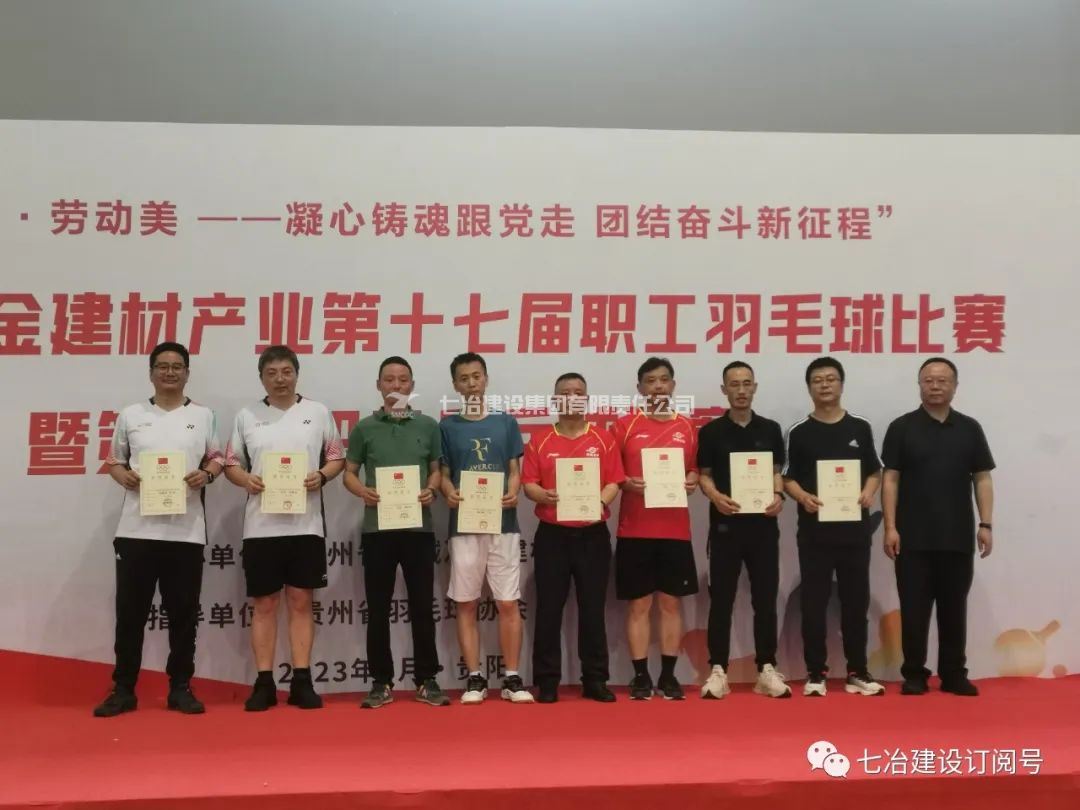 6月20日至21日,贵州省机械冶金建材产业“中国梦·劳动美—凝心铸魂跟党走 团结奋斗新征程”第十七届职工羽毛球暨第八届职工乒乓球比赛在贵阳市六广门体育馆开赛。经过激烈角逐,七冶蝉联羽毛球“团体赛第一名”,并获得羽毛球“干部组双打第一名和第三名”的好成绩。
