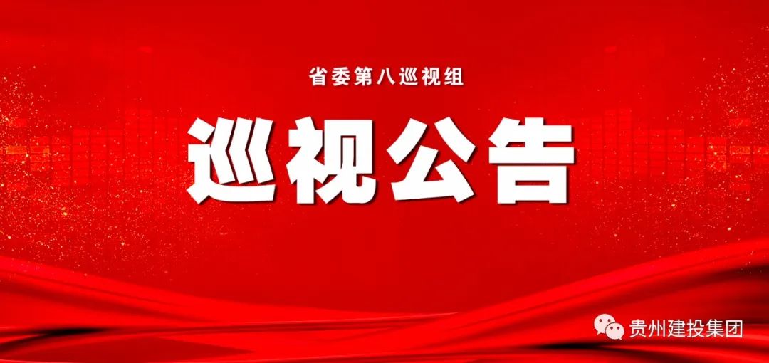 根据省委安排,省委第八巡视组自2023年10月11日起至12月30日止,对贵州省建设投资集团有限公司党委开展巡视。现将有关事项公告如下: