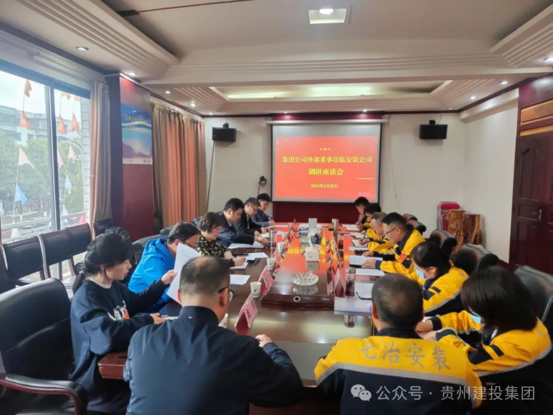 3月26日上午,贵州建投集团外部董事张艳齐、王皖波、王瑞、熊德斌一行来到安装公司调研座谈。安装公司在家班子成员、相关部门负责人参加座谈会。