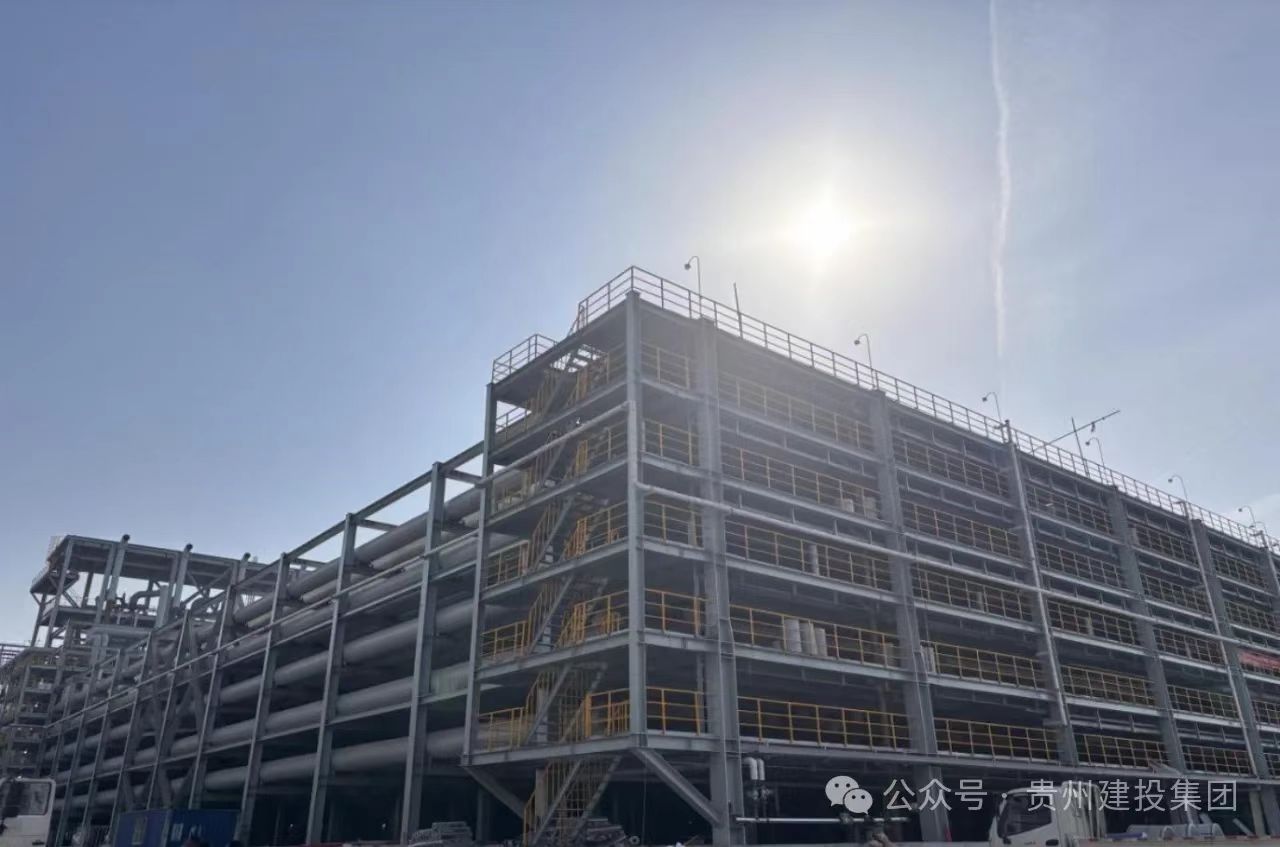 贵州建投集团承建的茅台包装物流园一期二标段主体结构已进入全面冲刺封顶阶段。该项目是贵州省重点工程之一,用地面积1092.2亩,建筑面积约19.47万平方米,集勾贮、罐装、运输一体化高端智能综合体项目。项目建成后,作为茅台高科技创新、参观旅游一体化精品工程,同时也是贵州建投集团对外宣传的一张高质量工匠精神品牌名片。