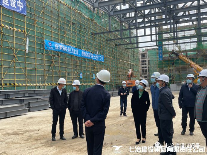 在钢结构吊装区域,七冶集团总工程师汪洋结合现场情况,简要汇报了七冶安全生产标准化工作情况及疫情防控管控措施。